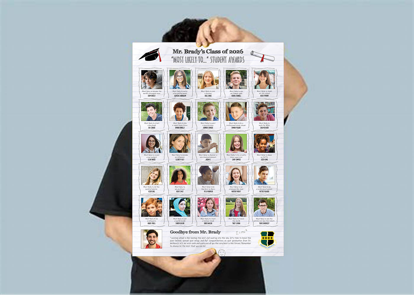 If you're looking for a quick and easy-to-do graduation gift, the new "Most Likely To..." Awards poster is for you! With this fun and unique graduation gift, they'll never forget who was in their class!